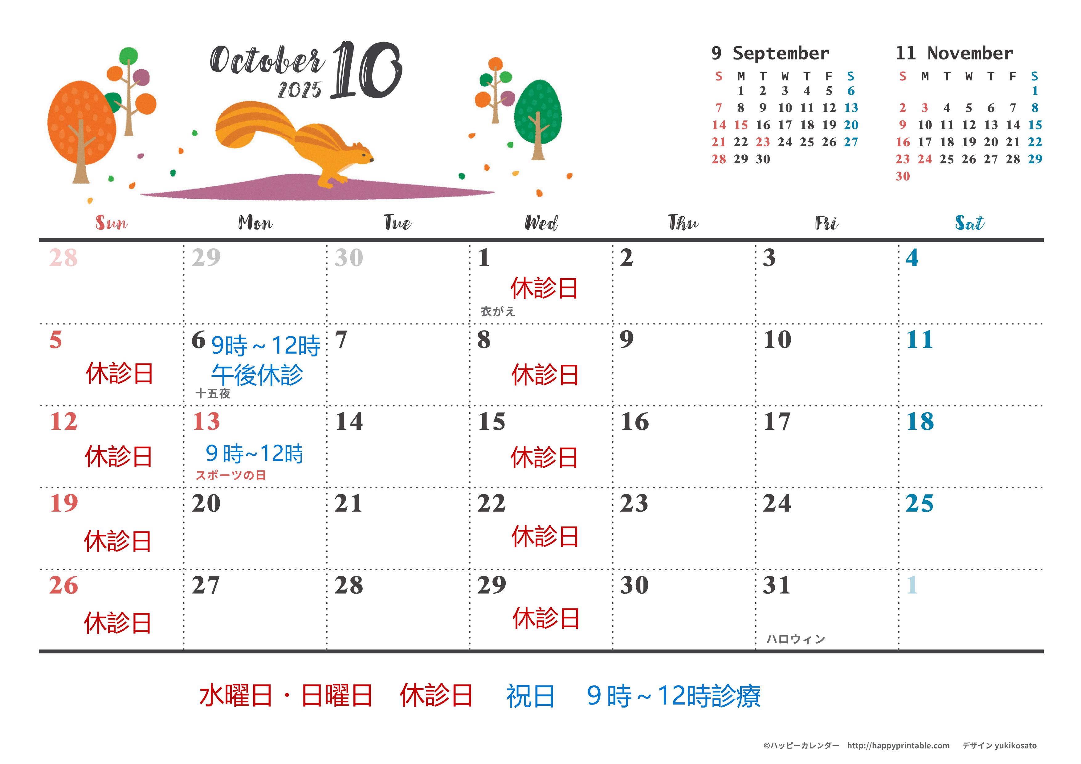 - 平日(水曜日を除く)・土曜/9:00~12:00 16:00~19:00